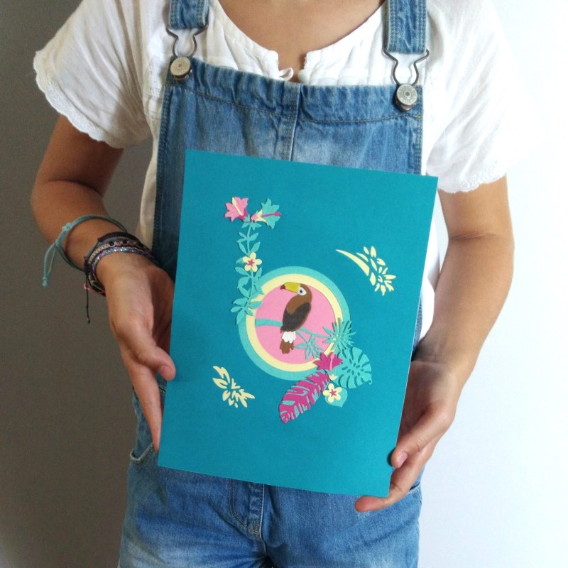 à partir de 6 ans. Création d’une carte motif jungle avec la machine et des « dies »