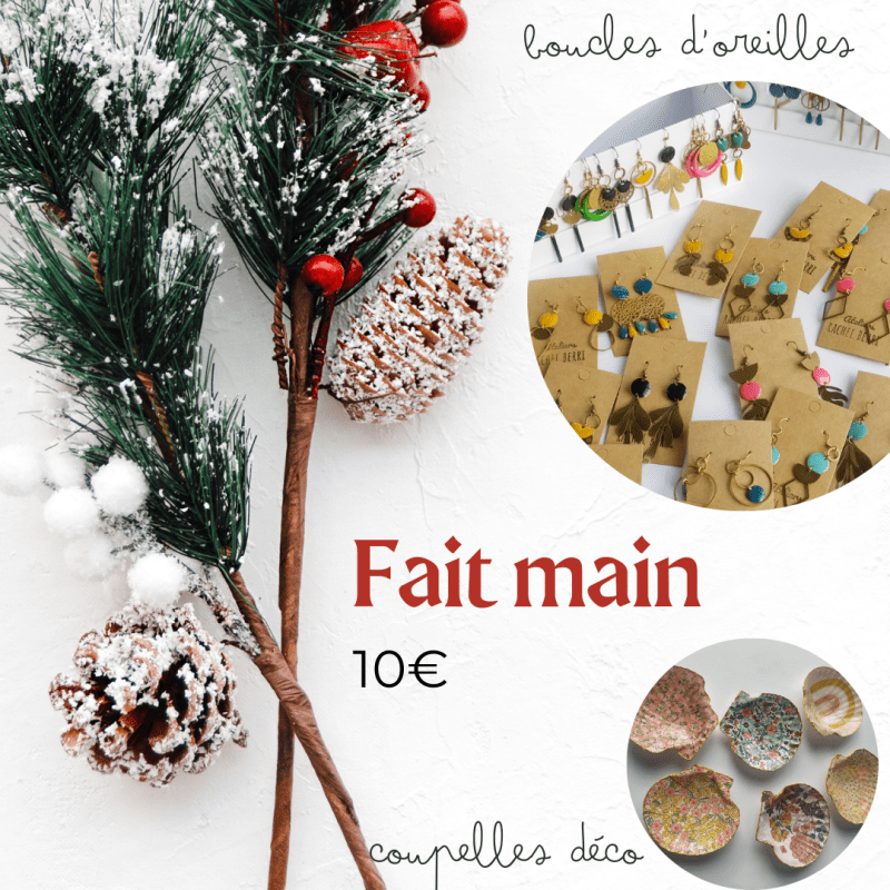 Cette année je vous propose mes traditionnelles boucles d’oreilles en laiton et, en nouveauté, des coupelles décoratives idéales pour accueillir vos bijoux. 10€ Venez me voir lors des marchés : Lentilly samedi 23 nov 11h30 – 17hLa Halte, Lyon Vaise samedi 30 et dimanche 1er déc 11h – 18hChampagne au Mont d’Or dimanche 8 déc…
