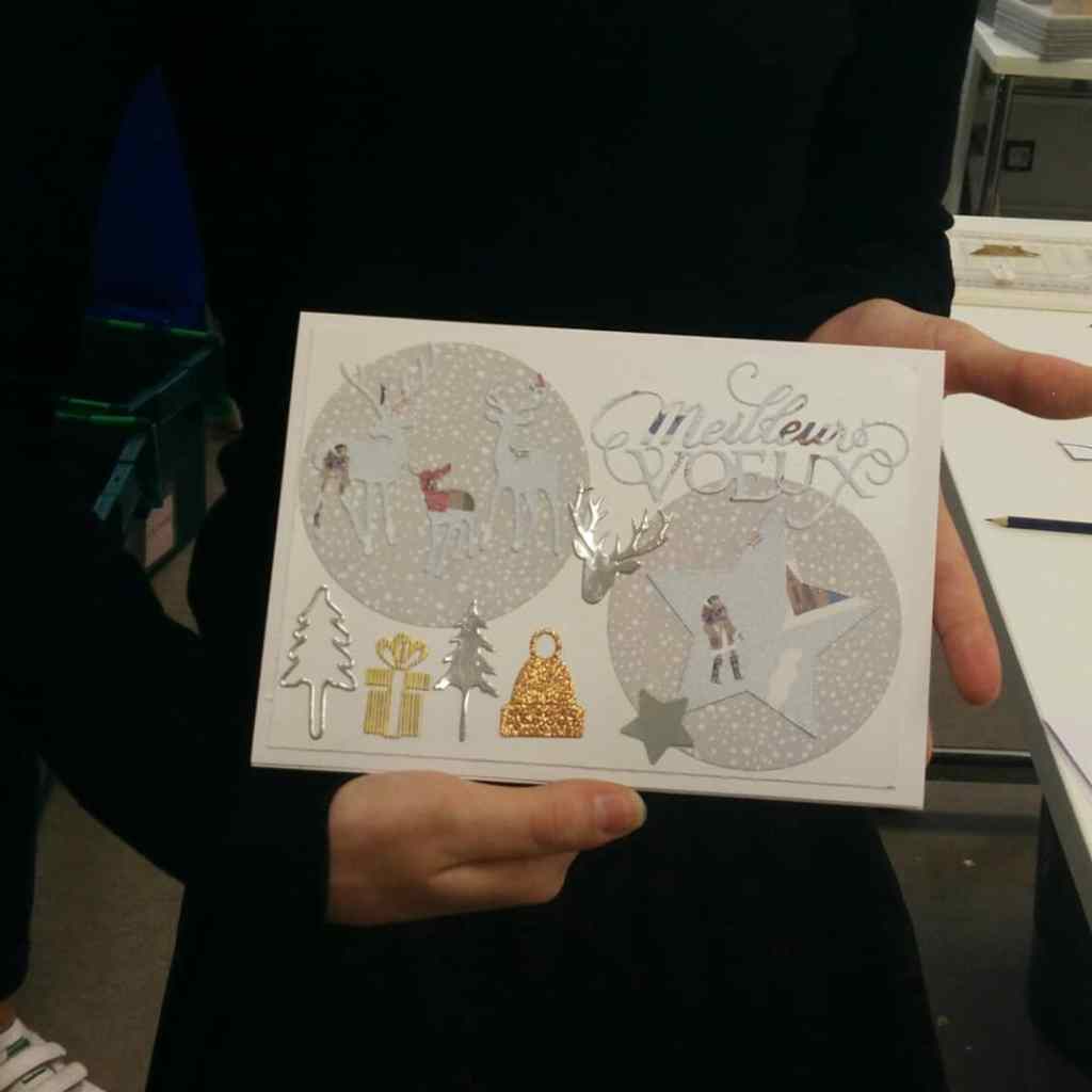 Atelier création de cartes pour la fin d’année. Mise à disposition de machines de « scrapbooking » qui découpent le papier selon des formes prédéfinies. Une sélection de jolis papiers tendance et une collection de 200 « dies » (formes de découpes) à disposition. En plus, des exemples de cartes pour aider l’inspiration… L’utilisation de la machine est très facile et amusant ; le résultat impressionnant ; la superposition des papiers permet de donner du relief à la carte. Possibilité de créer les enveloppes également avec un appareil spécial. Plusieurs machines permettent d’animer un atelier pour 6 à 8 enfants/ados/adultes. En 1h30-2h on a le temps de faire 2 cartes.