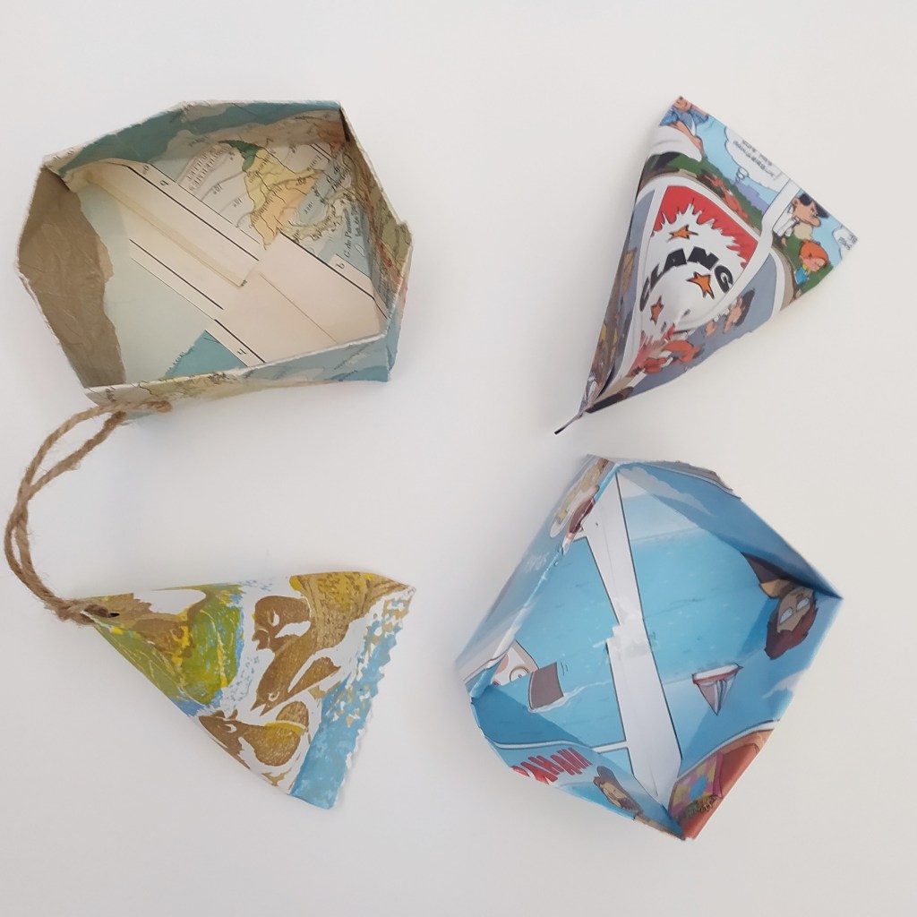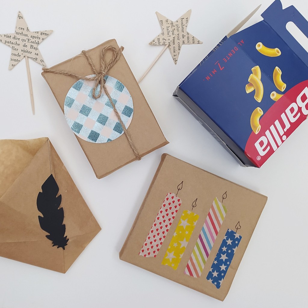 Il s’agir d’une invitation à bricoler avec du papier et carton recyclé (journaux, vieux livres, carton alimentaire, papier cadeau récupéré …) afin de créer des objets de papeterie (trousse, emballages cadeaux, enveloppes, boites …) au choix.